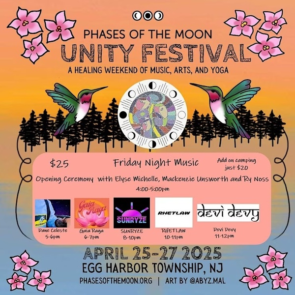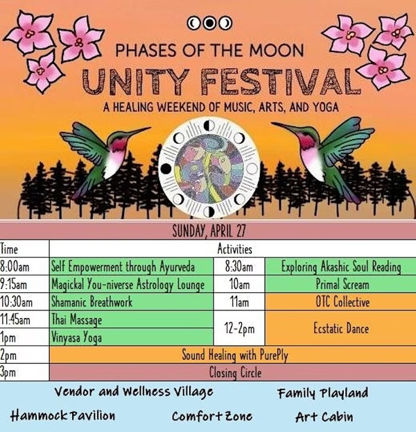 Now in its 5th year, this transformative weekend of music, art and yoga is a place where people come together to inspire unity in community, in creativity, in health, and in spirituality. Our cherished grounds hold space for people to explore, grow and connect through an extensive lineup of classes (over 20 workshops!!!), express creativity through art (visit the Underland Lounge and the art cabin with tye dye, wood painting, trinket making and our gratitude tree), music (including Lovelight Band, DJs Munsy and SunRyze, Gaia Raga, OTC Collective, and more), ecstatic dance, silent disco presented by Weekday Underground, sound baths, song circles and drum circles and build community through late-night talks around the campfire. Whether you are seeking inspiration, rejuvenation, or a chance to simply be, Phases of the Moon welcomes you with open arms!