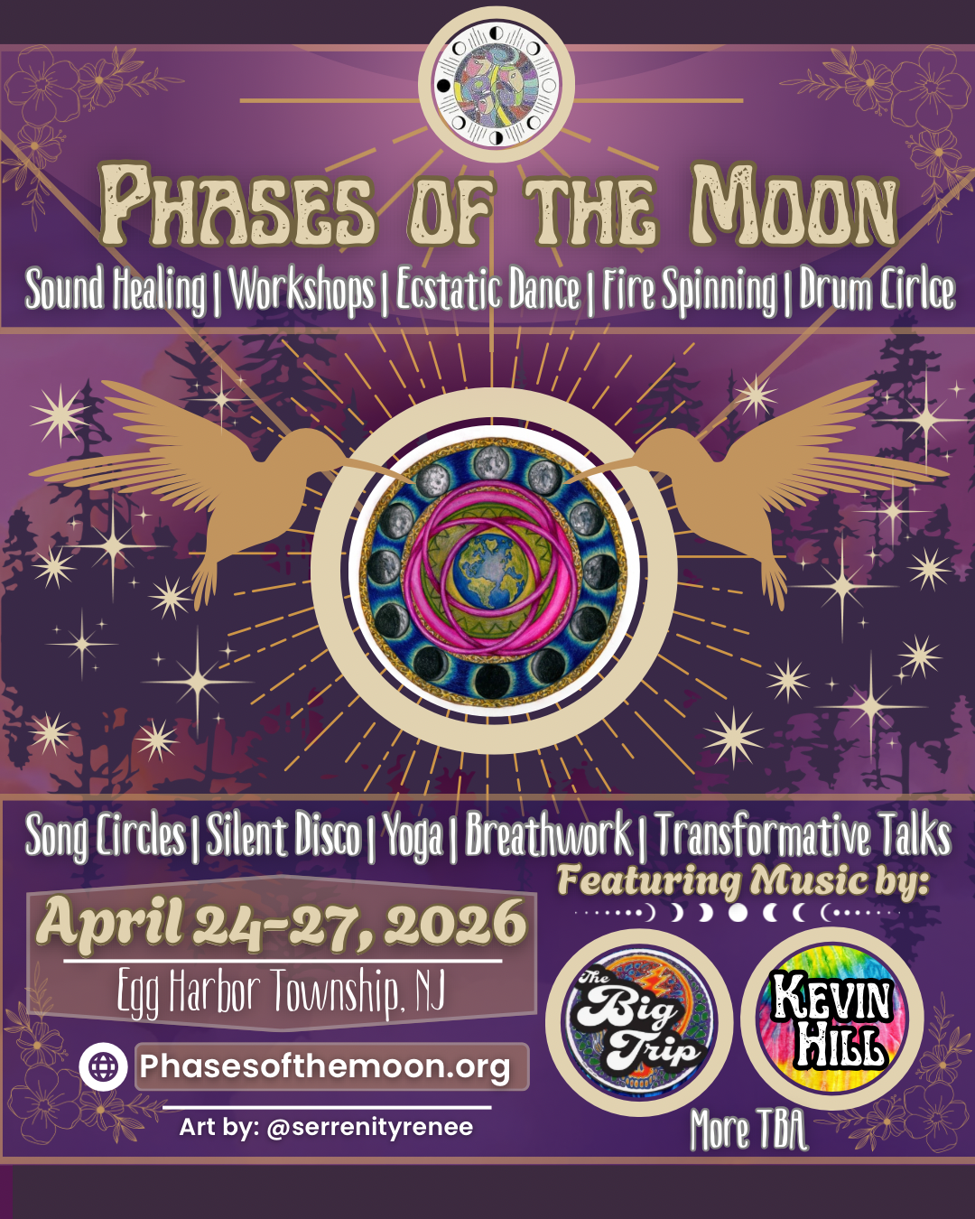 Join us for a transformative weekend of community, creativity, and healing at Phases of the Moon Festival (April 24-27, 2026). Phases of the Moon is an event where people can come together to inspire unity through community, creativity, nourishment, and holistic practices. Our intimate gatherings hold space for people to “do the work” through an extensive lineup of classes, express creativity through art, music, and dance, and build community through deep late-night talks. Whether you are seeking inspiration, rejuvenation, or a chance to simply be, Phases of the Moon welcomes you with open arms!